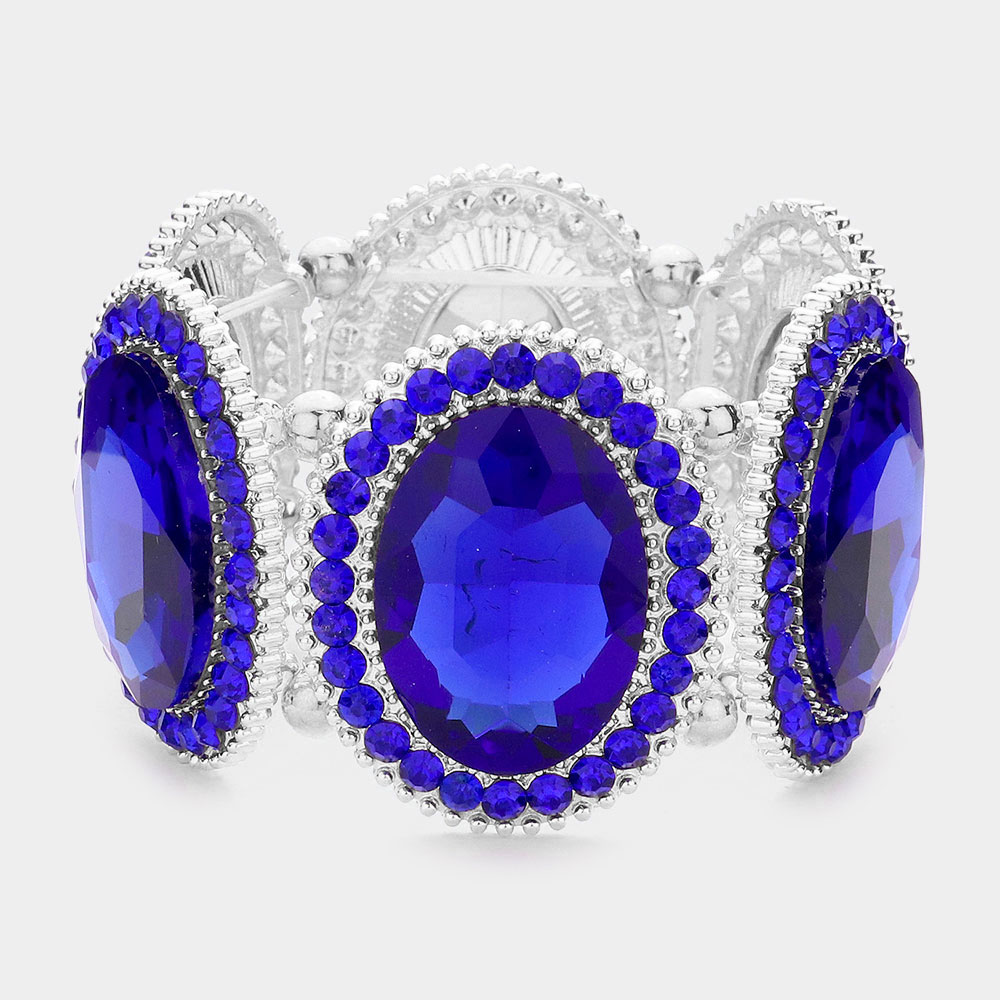 Pave Trim Crystal Oval Stone Stretch Evening Bracelet