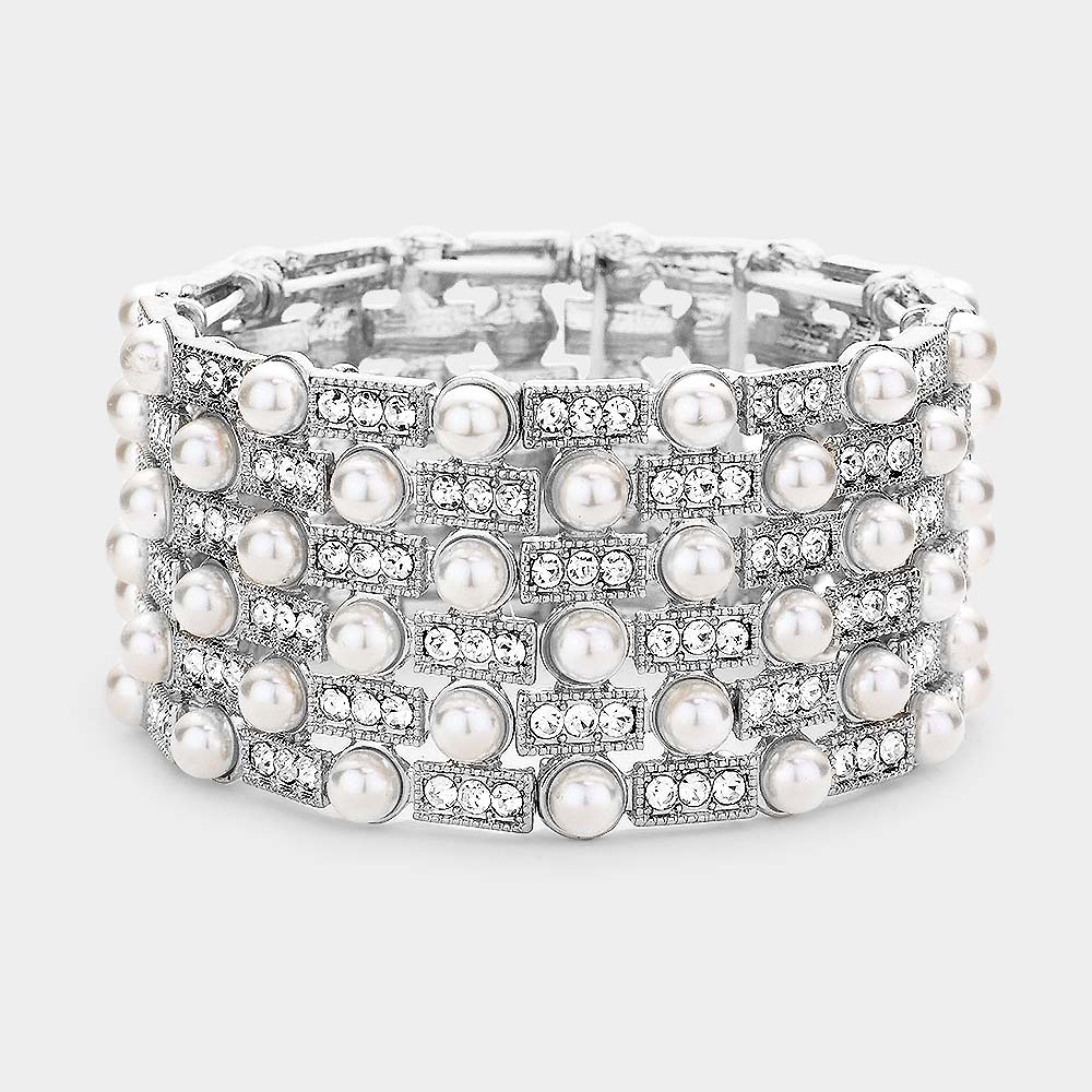 Pearl Embellished Crystal Stretch Evening Bracelet