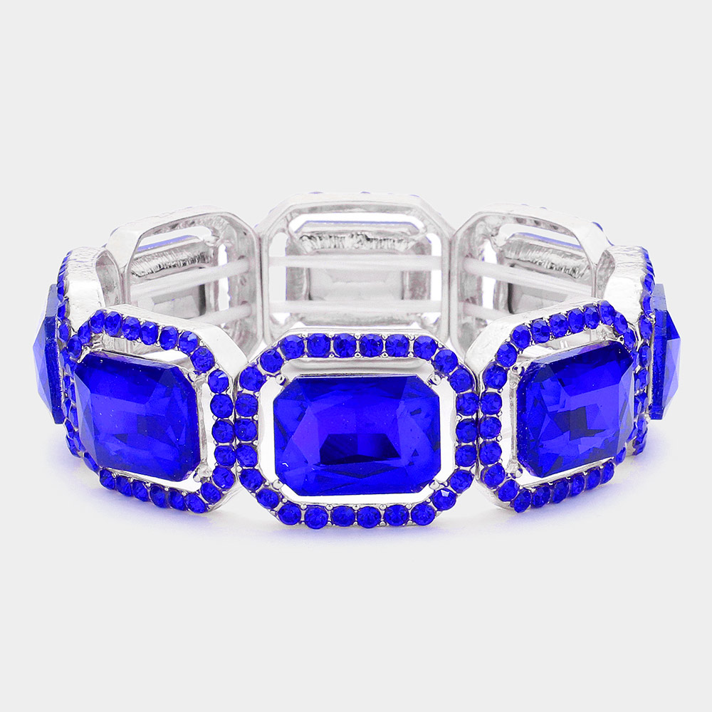 Rectangle Crystal Rhinestone Pave Stretch Evening Bracelet