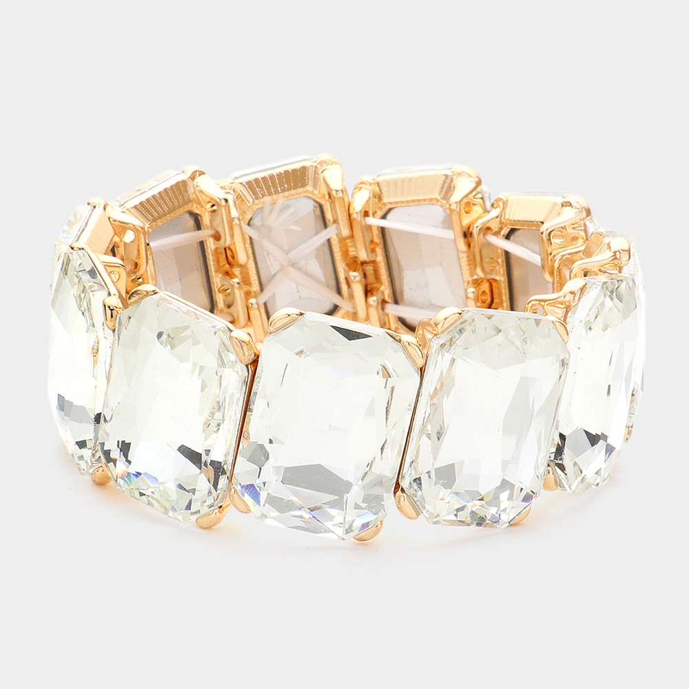 Rectangle Crystal Stone Cluster Stretch Evening Bracelet