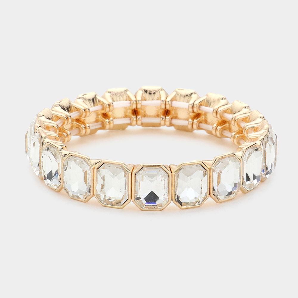 Rectangle Glass Stone Cluster Stretch Evening Bracelet