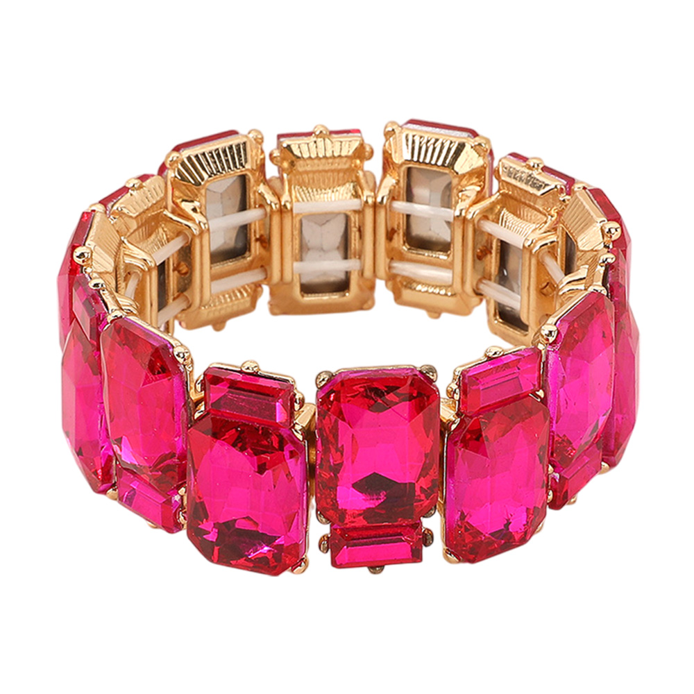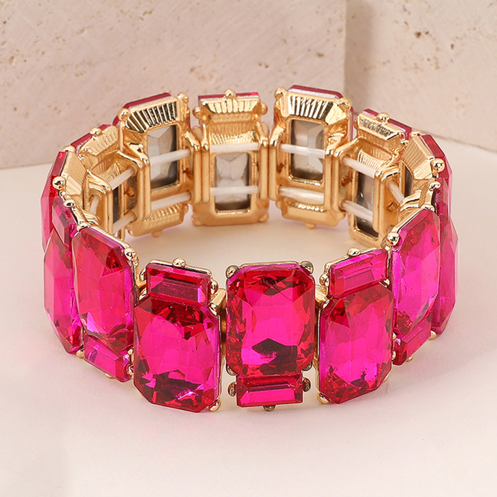 Rectangle Glass Stone Cluster Stretch Evening Bracelet