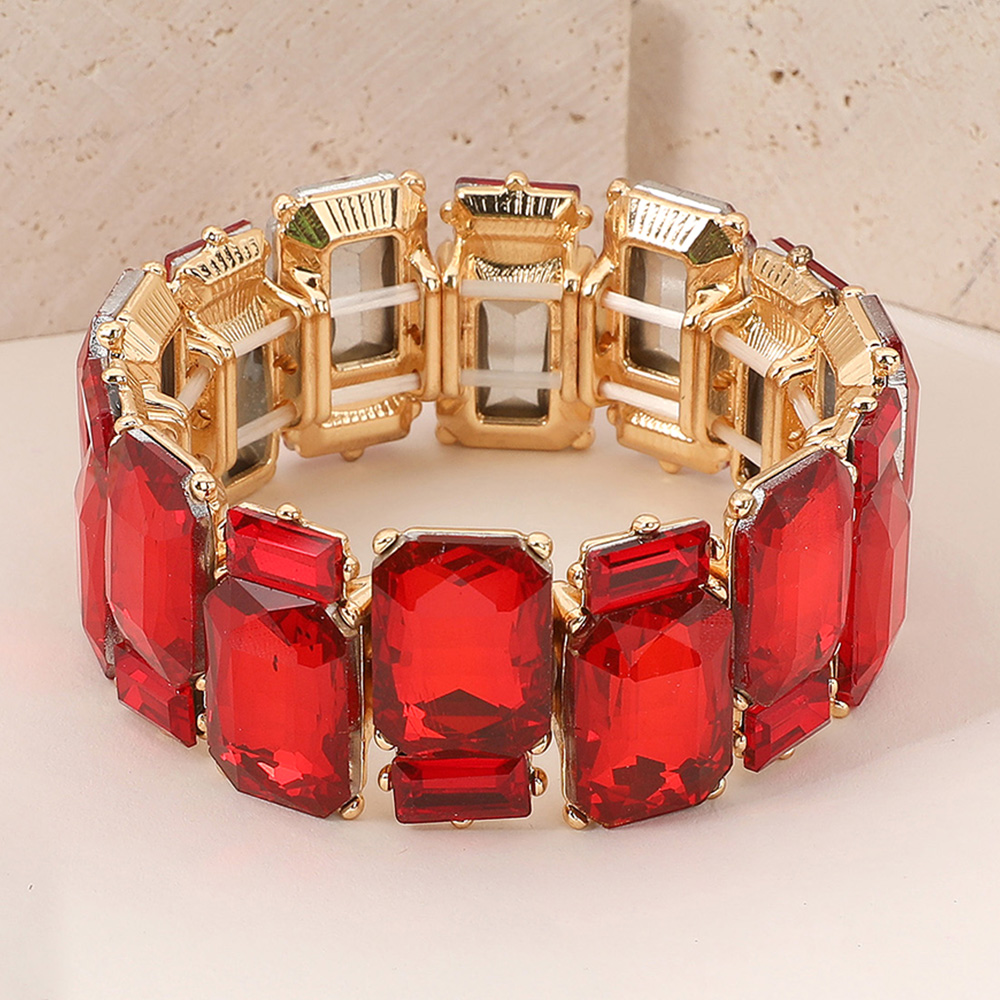 Rectangle Glass Stone Cluster Stretch Evening Bracelet