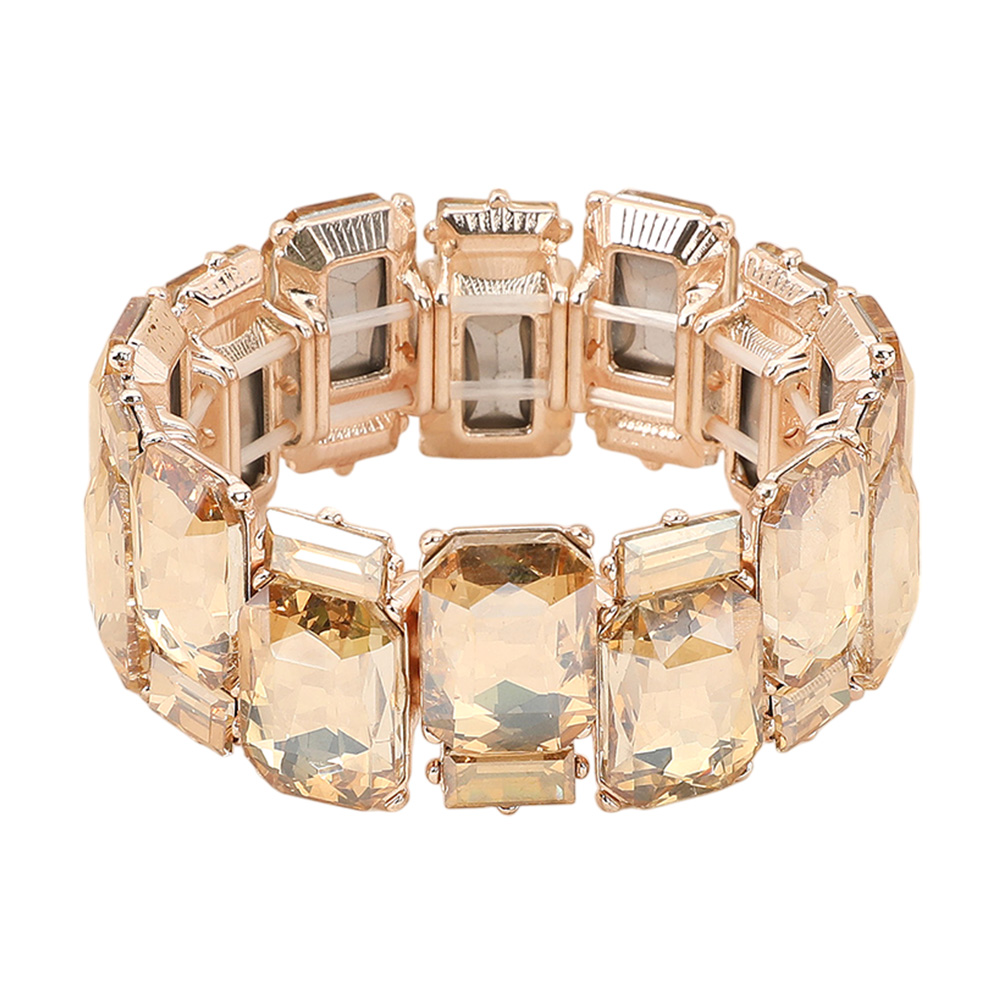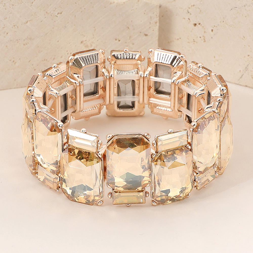 Rectangle Glass Stone Cluster Stretch Evening Bracelet