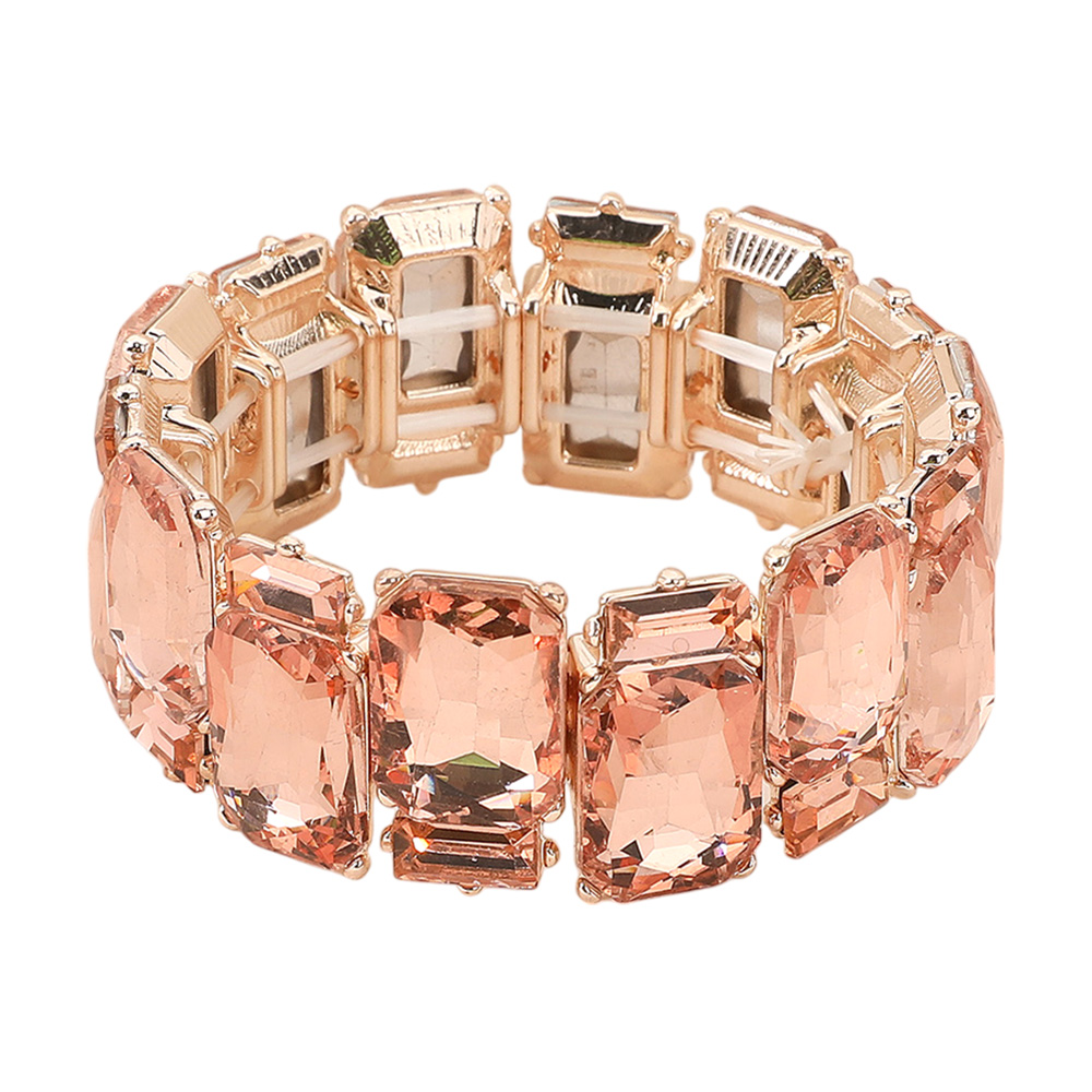 Rectangle Glass Stone Cluster Stretch Evening Bracelet