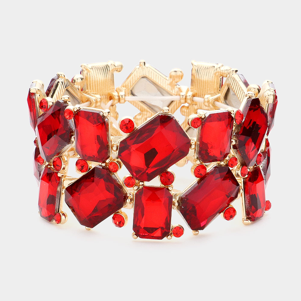 Rectangle Round Glass Stone Cluster Stretch Evening Bracelet