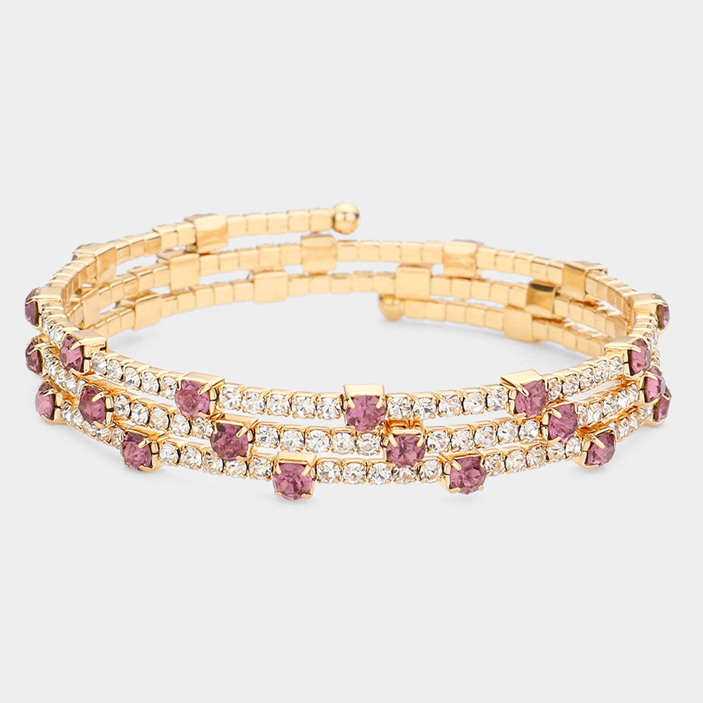 Stainless Steel CZ Stone Rim Pearl Charm Stretch Bracelet