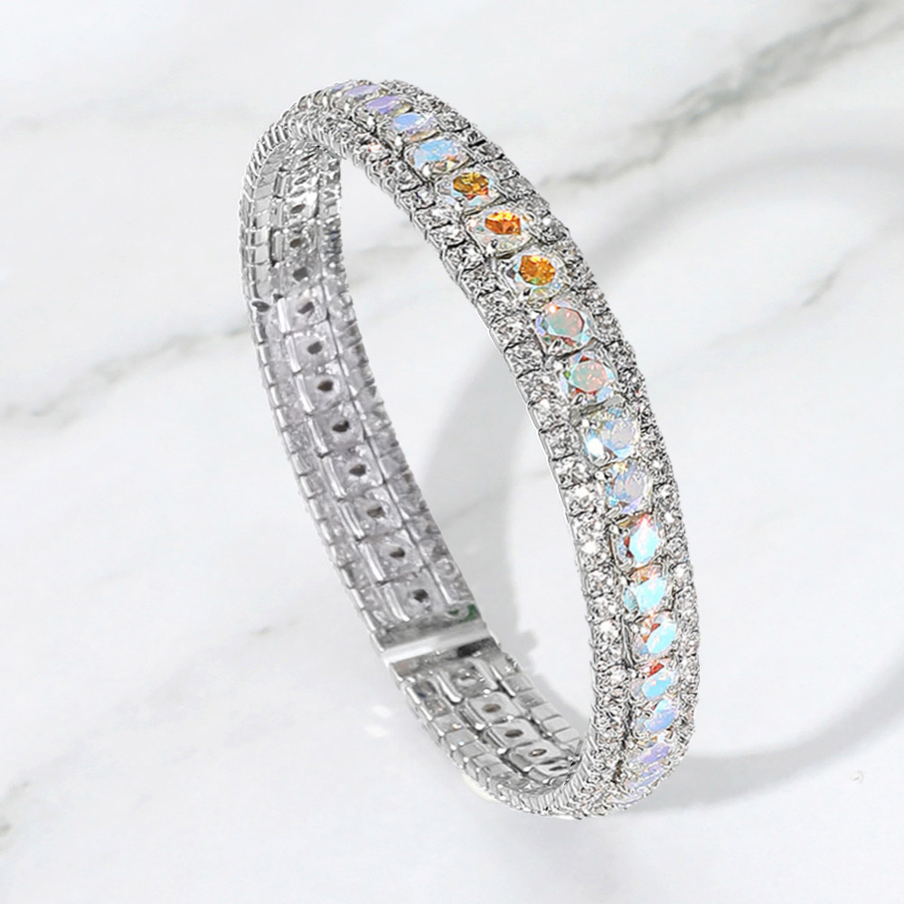 • Dazzling adjustable bangle bracelet with two rows of sparkling crystals. Ideal for adding a refined touch to evening wear or elevating everyday looks with timeless shimmer.