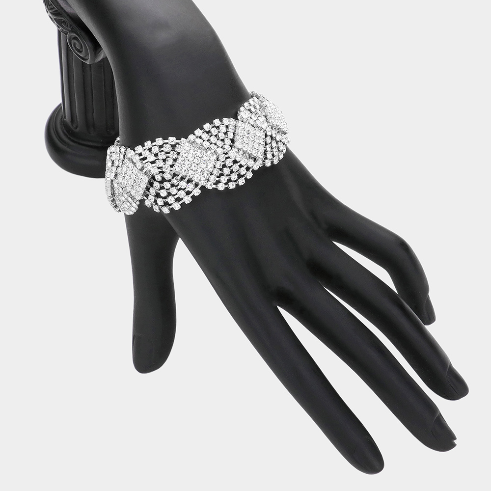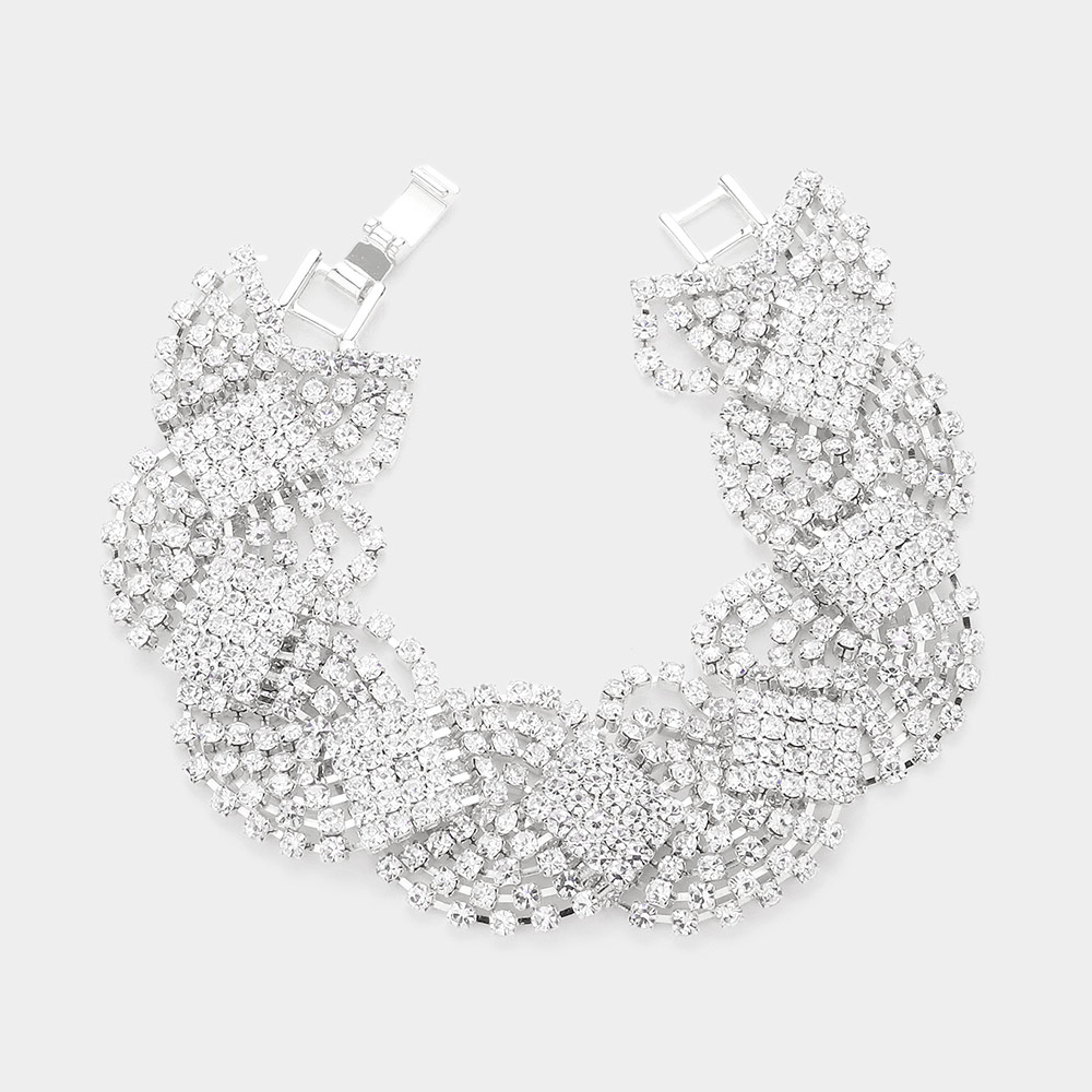 White Gold Dipped CZ Stone Paved Crisscross Pendant Necklace