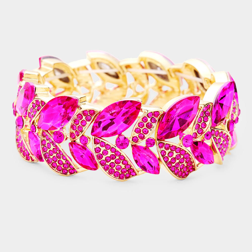 Rhinestone Pave Marquise Stone Leaf Stretch Evening Bracelet