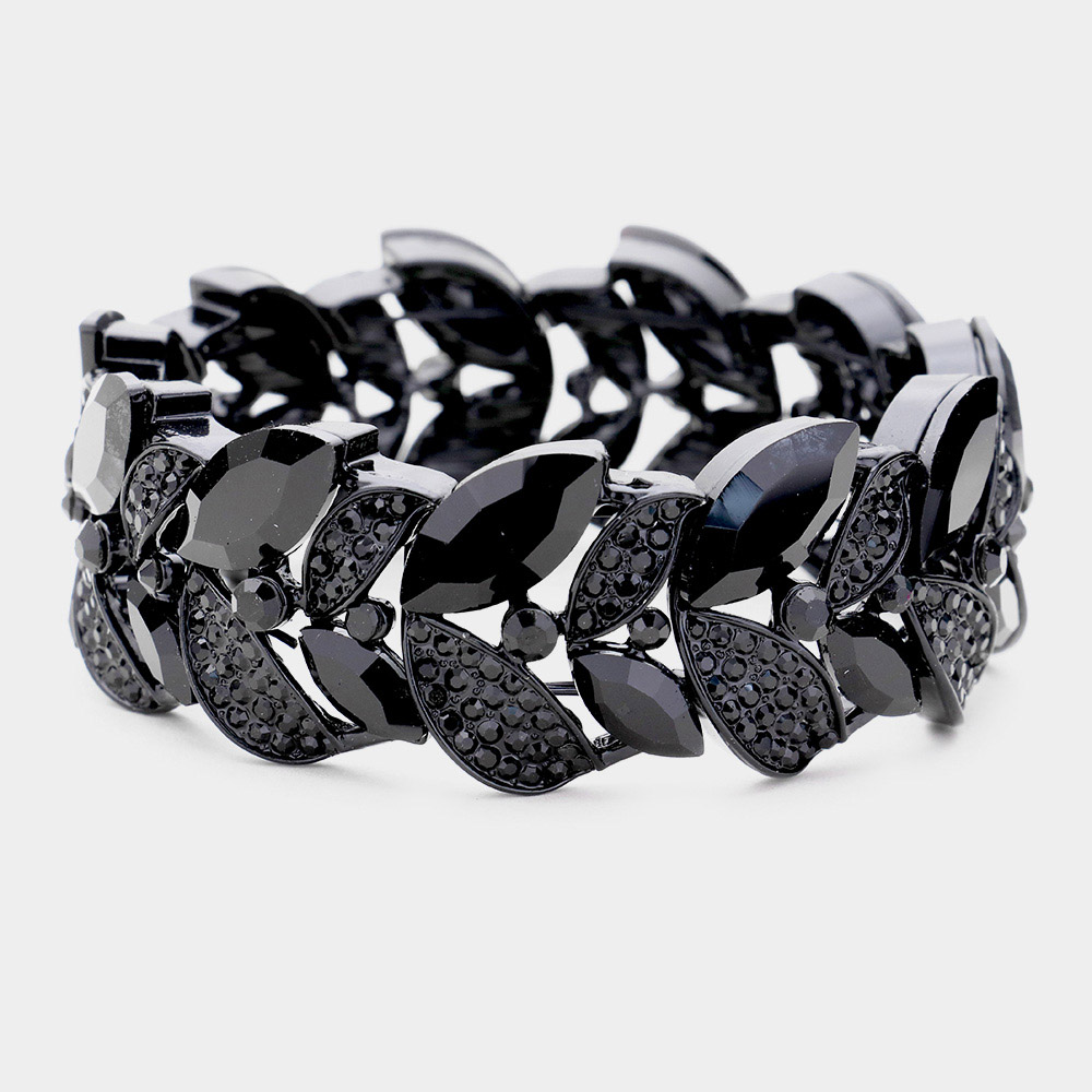 Rhinestone Pave Marquise Stone Leaf Stretch Evening Bracelet