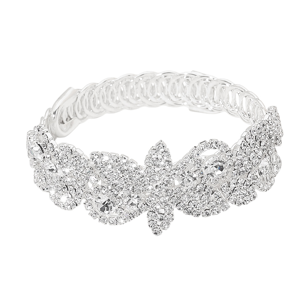 Rhinestone Paved Floral Leaf Adjustable Evening Bracelet Rhinestone Paved Floral Leaf Adjustable Evening Bracelet