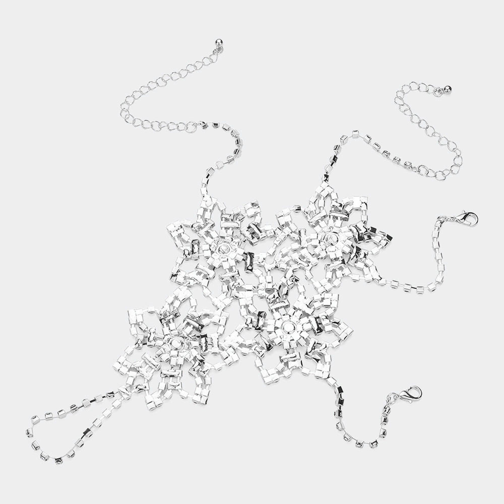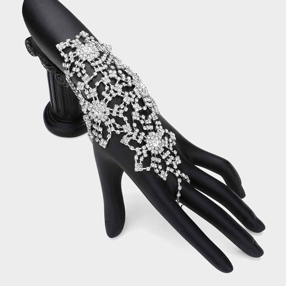Rhinestone Paved Flower Pointed Hand Chain Evening Bracelet