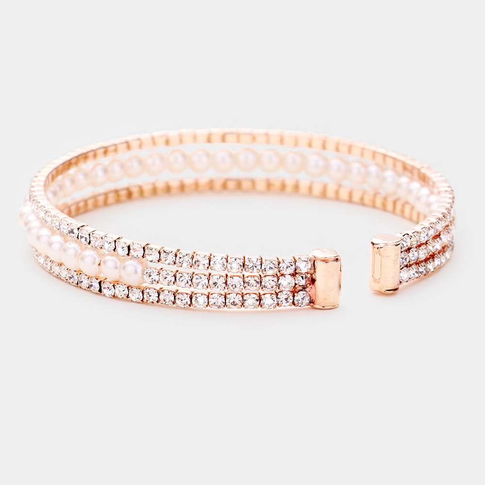 3PCS - Pearl Metal Ball Beaded Stretch Multi Layered Bracelets