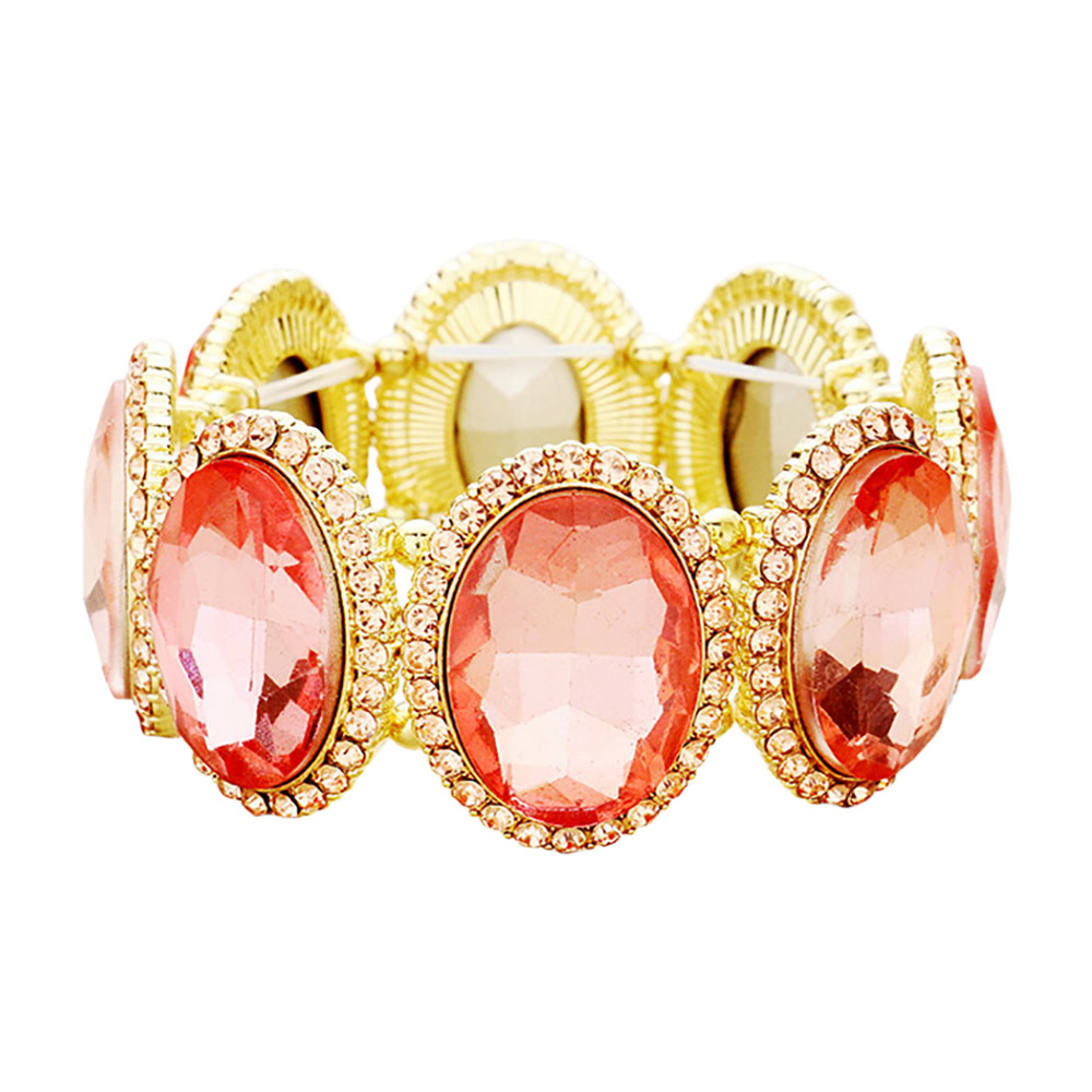 Details • Size : 1.25" H • Stretchable • Add glamour to your look with this oval crystal stretch bracelet featuring sparkling stones framed in dazzling accents. The flexible fit ensures comfort while delivering bold elegance. Ideal for weddings, parties, and special occasions where standout style matters.