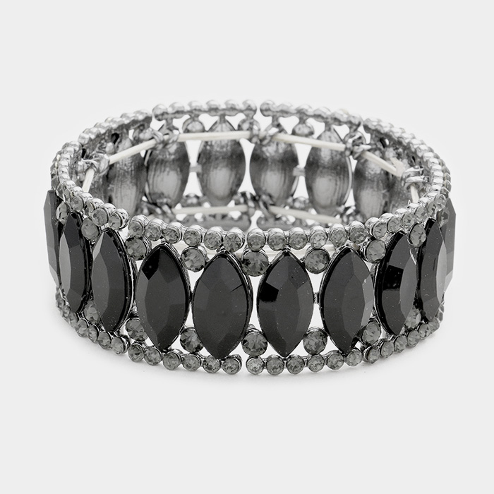 Emerald Cut Stone Accented Evening Stretch Bracelet
