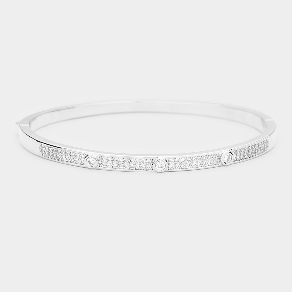 Rhodium Plated AAA CZ Cubic Zirconia Round Evening Bracelet