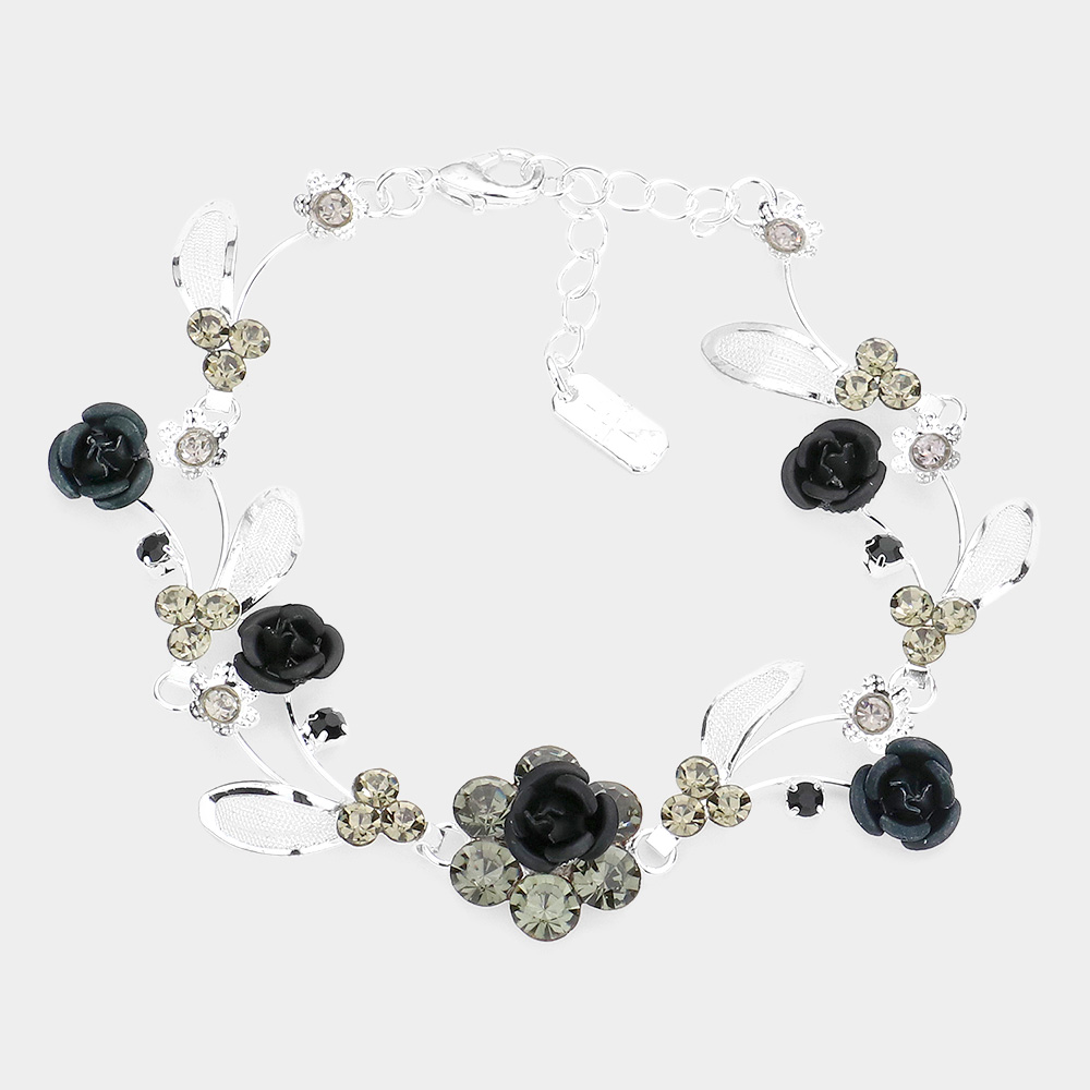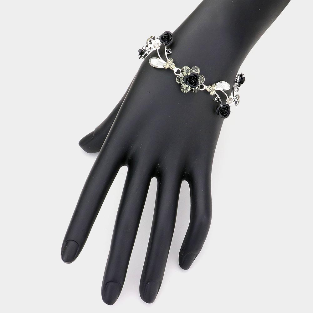 Flower Rhinestone Pave Pearl Stretch Bracelet