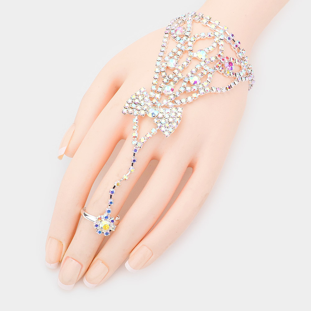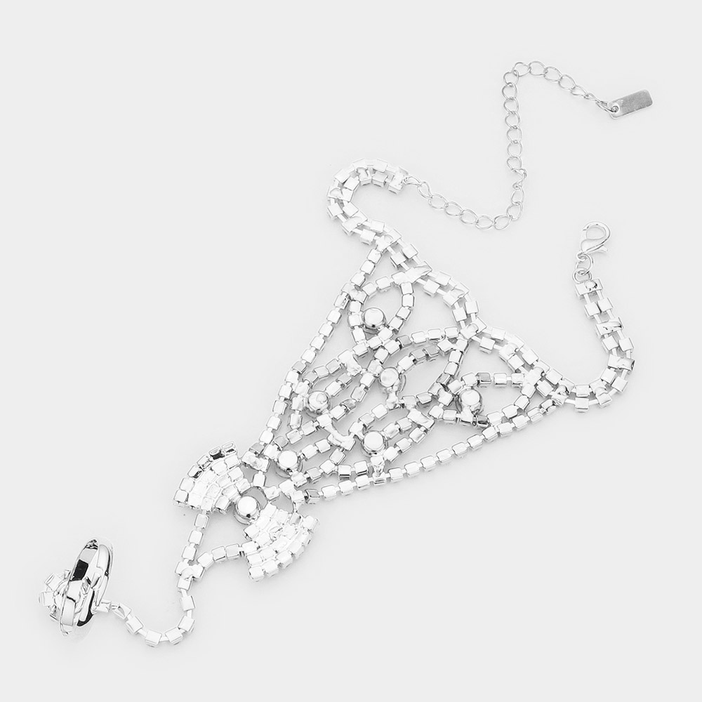 Round Crystal Rhinestone Net Hand Chain Bracelet