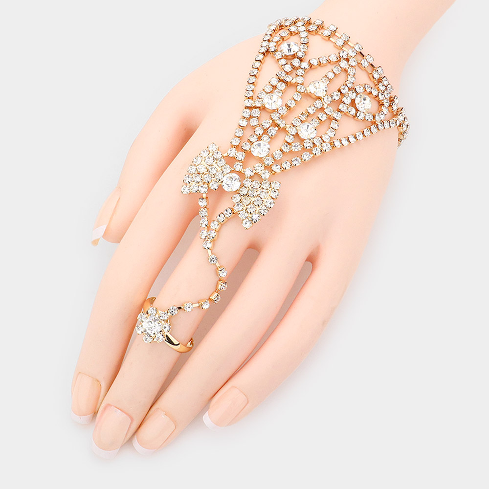Round Crystal Rhinestone Net Hand Chain Bracelet