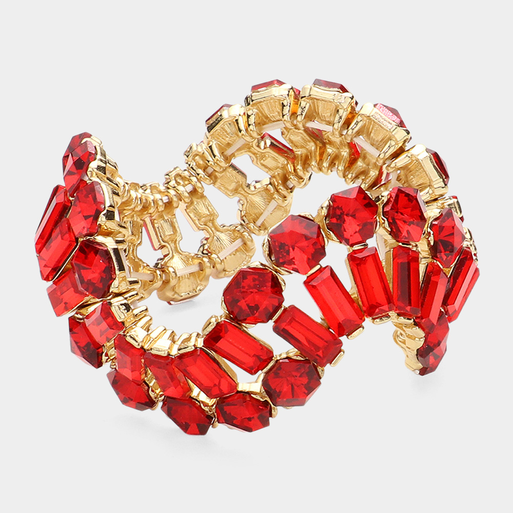 Round Emerald Cut Stone Cluster Wavy Stretch Evening Bracelet