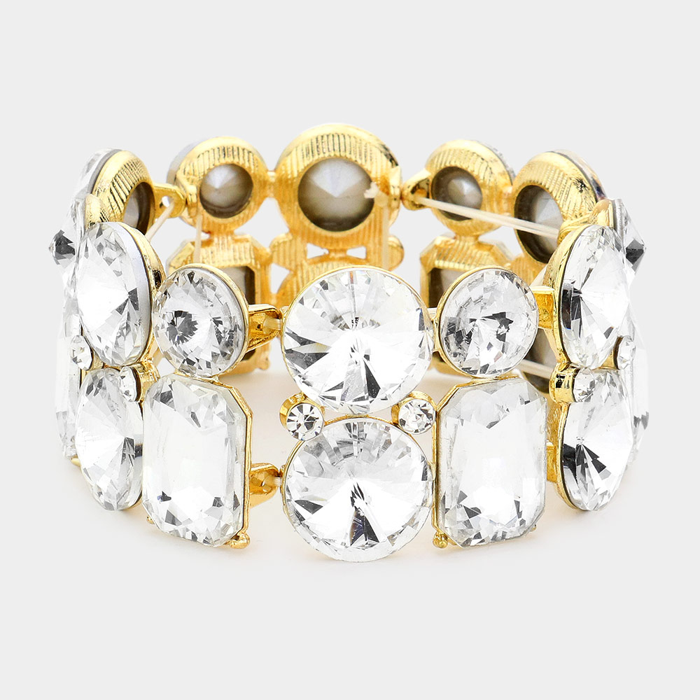 Round Emerald Cut Stone Stretch Evening Bracelet