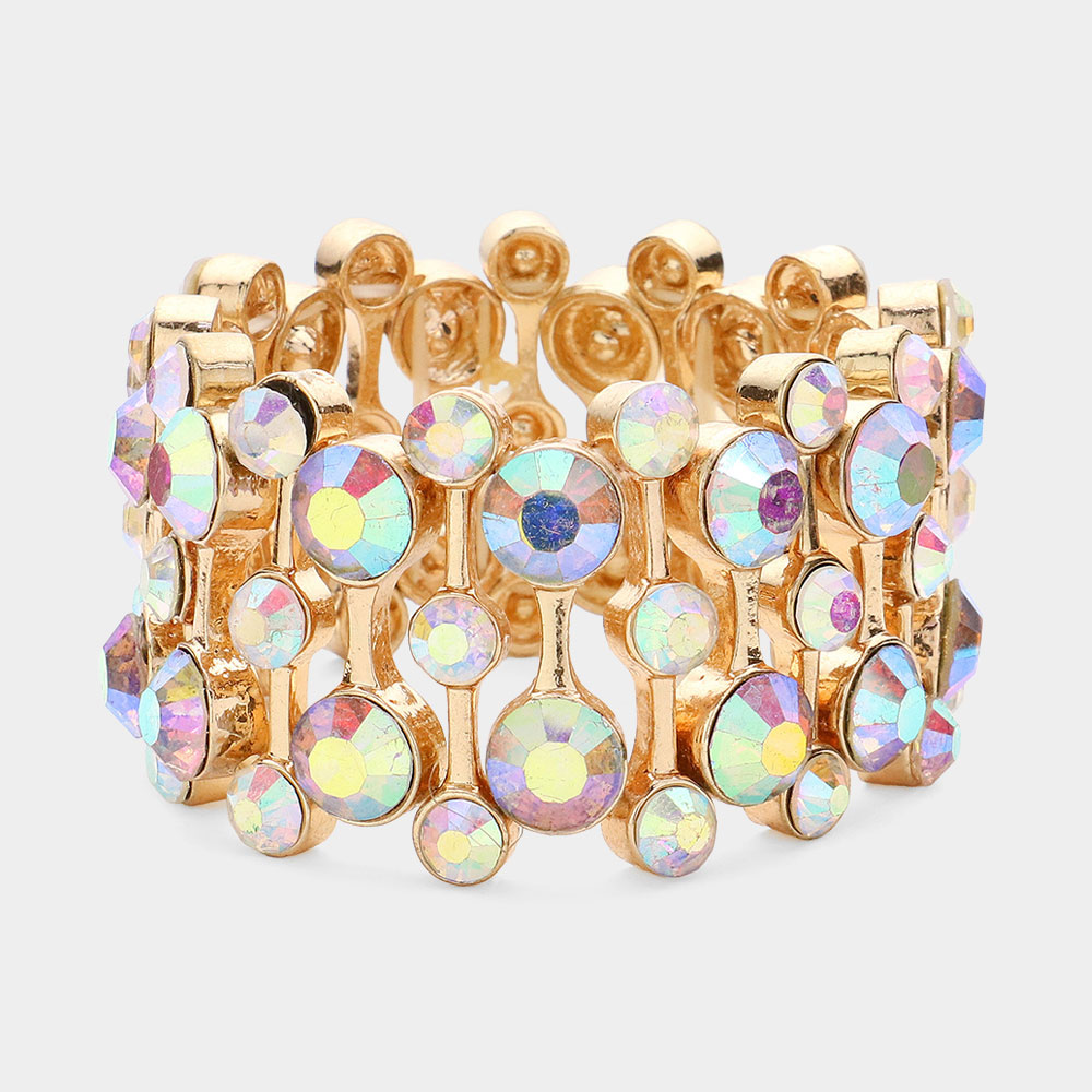 Round Glass Stone Embellished Stretch Evening Bracelet