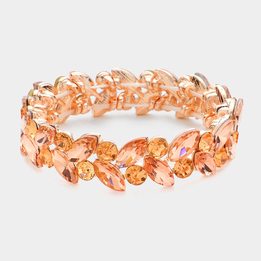 Round Marquise Stone Cluster Stretch Evening Bracelet