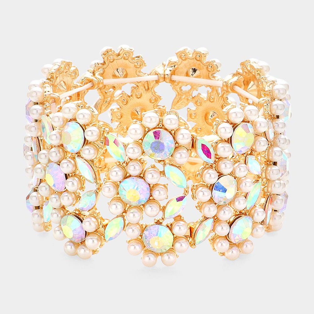 • Glamorous stretch bracelet featuring iridescent crystals and pearl accents in an intricate clustered design. Perfect for weddings, evening events, or special occasions, this radiant bracelet adds brilliance and elegance, making it a standout accessory for sophisticated, statement-making style.