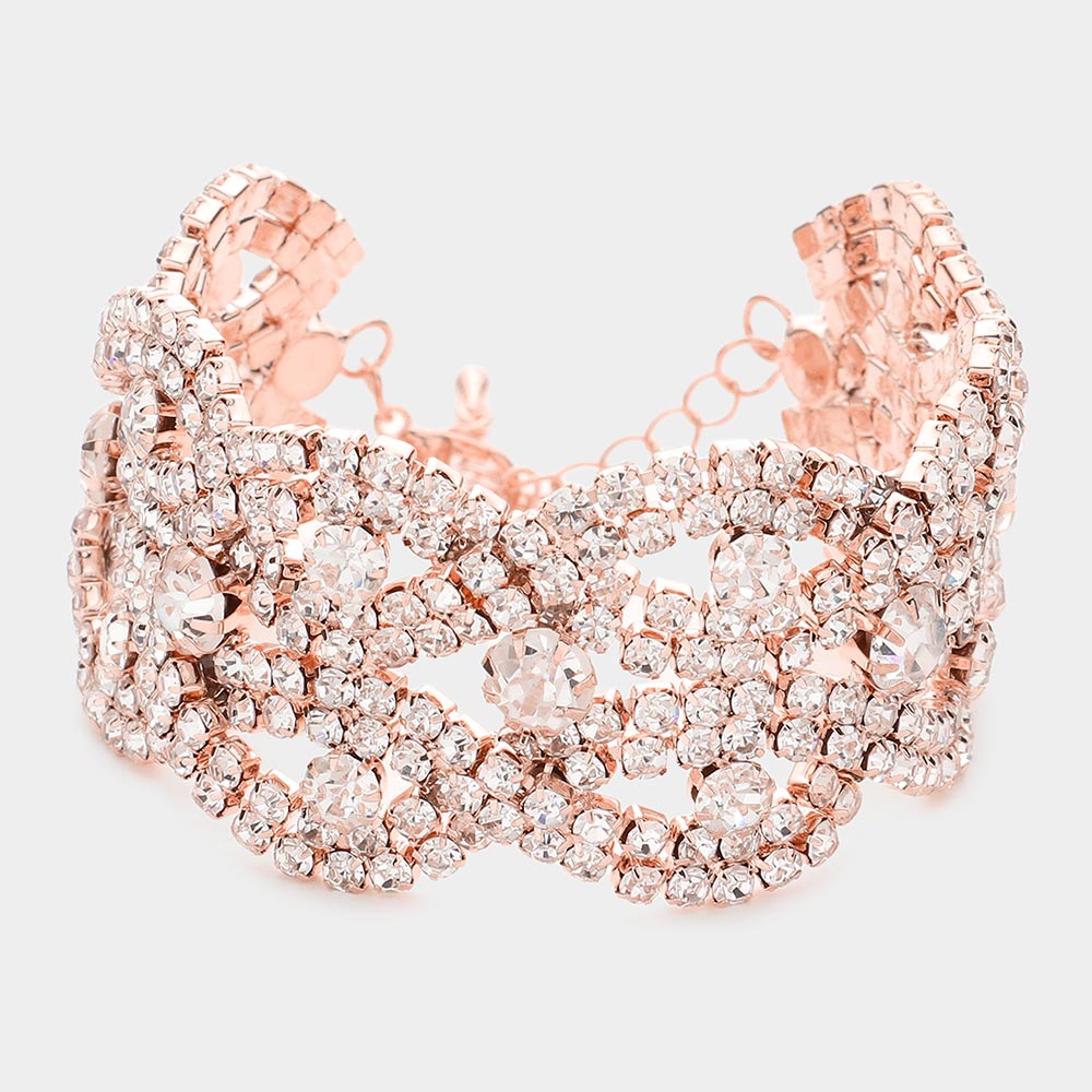 Round Crystal Rhinestone Trim Evening Bracelet
