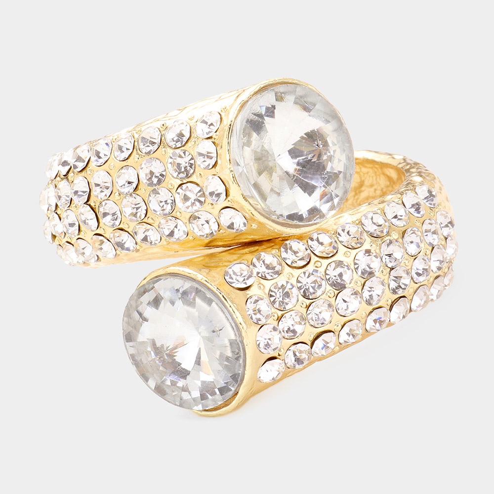 SECRET BOX_Stainless Steel Rhinestone Paved Skinny Wrap Ring