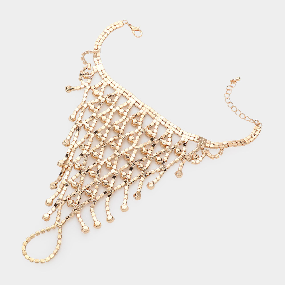 Round Stone Pointed Hand Chain Evening Bracelet