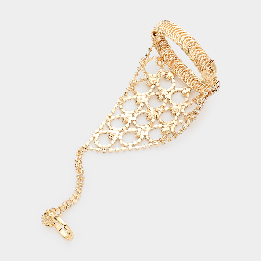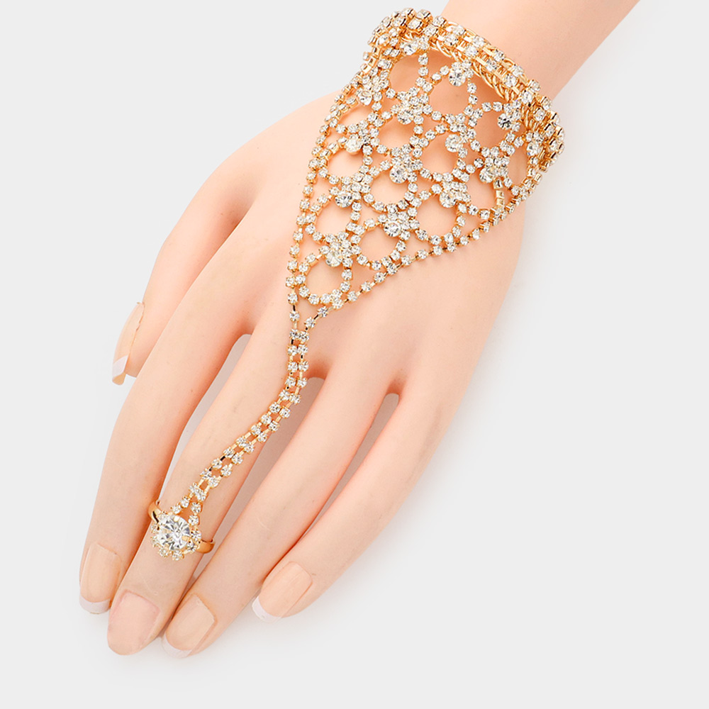 Round Stone Pointed Hand Chain Evening Bracelet