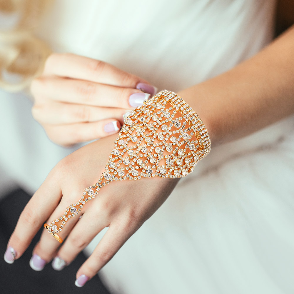 Teardrop Rhinestone Trim Stretch Evening Bracelet
