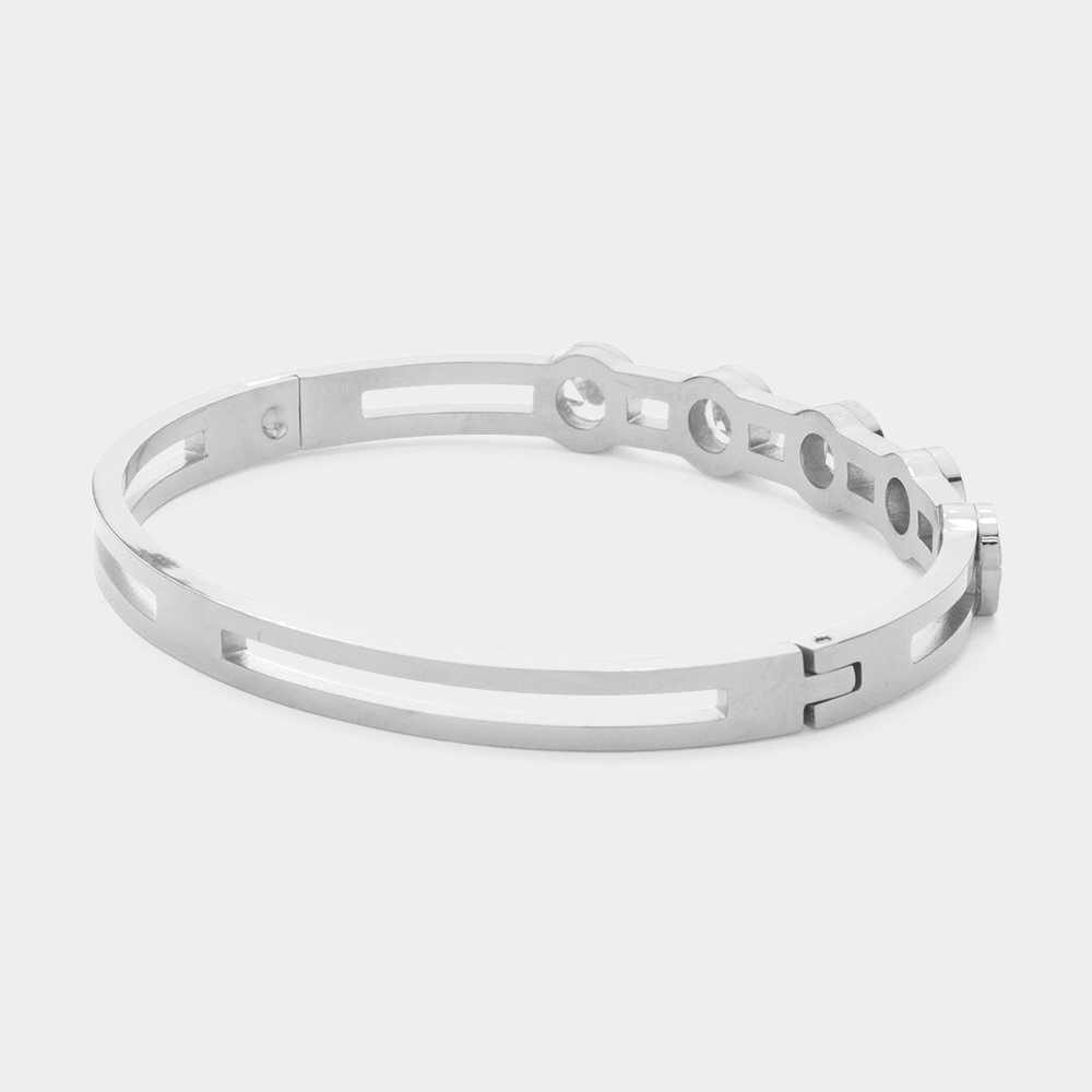 White Gold Dipped Full Baguette CZ Stone Around Evening Hoop Earrings