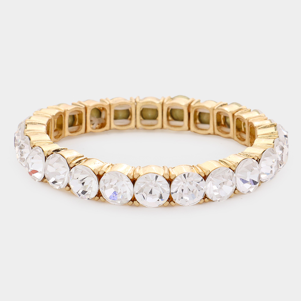 Square Faceted Gemstone Frame Beaded Stretch Bracelet