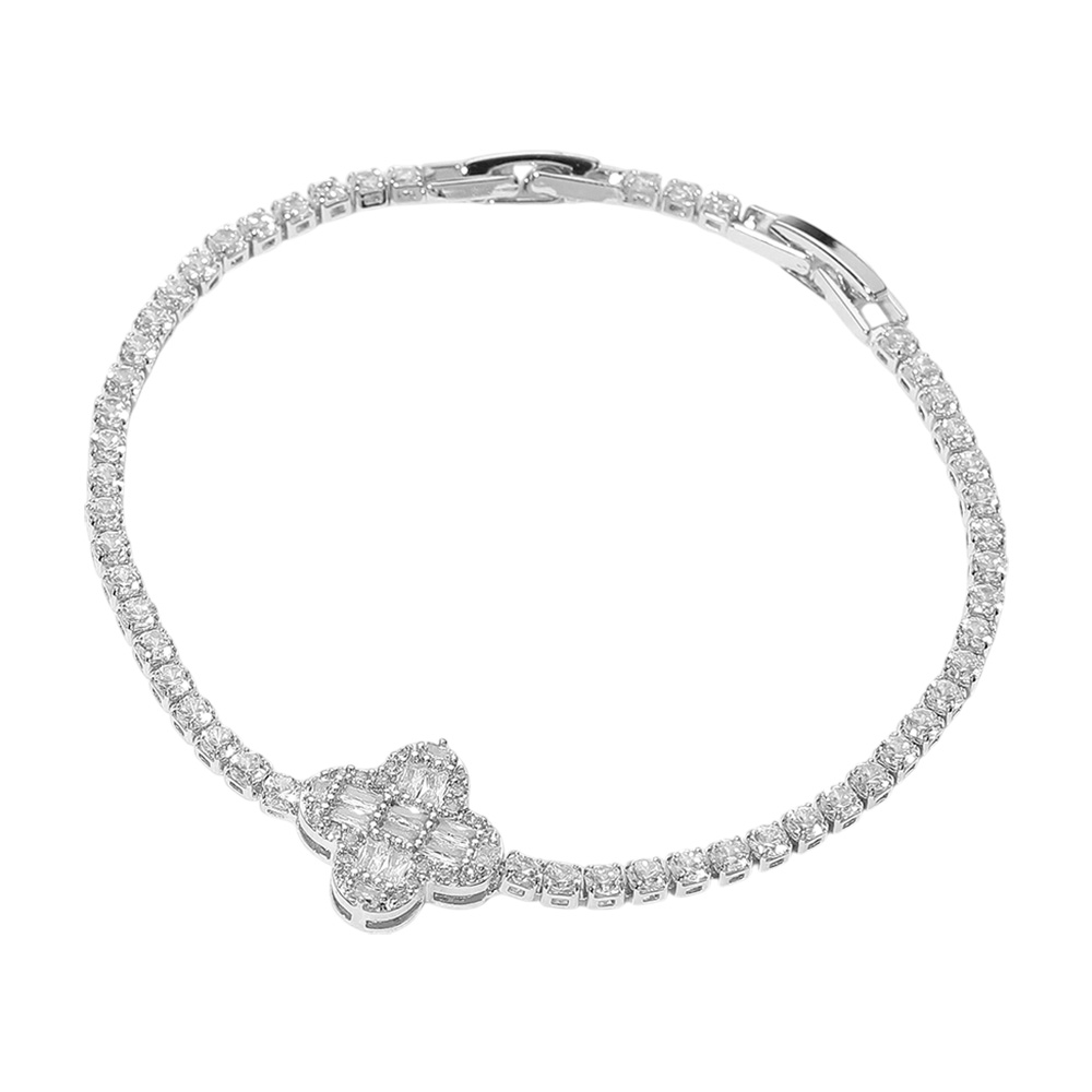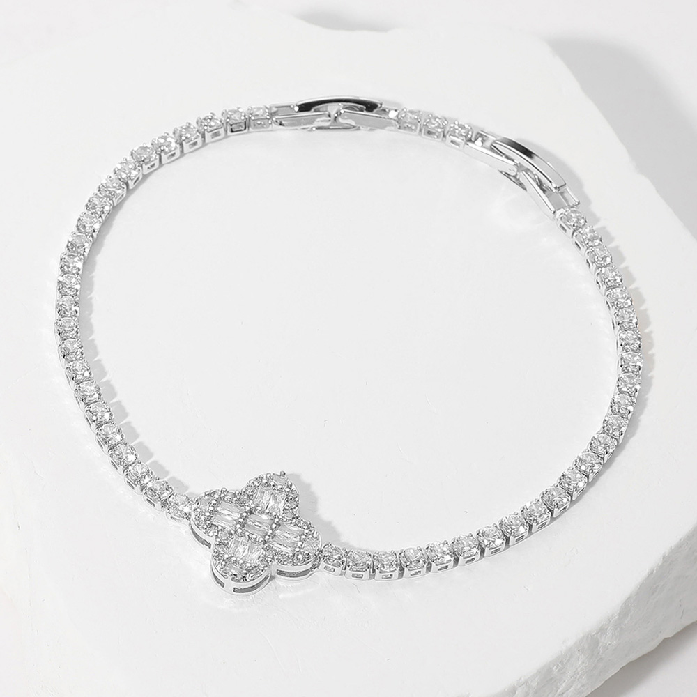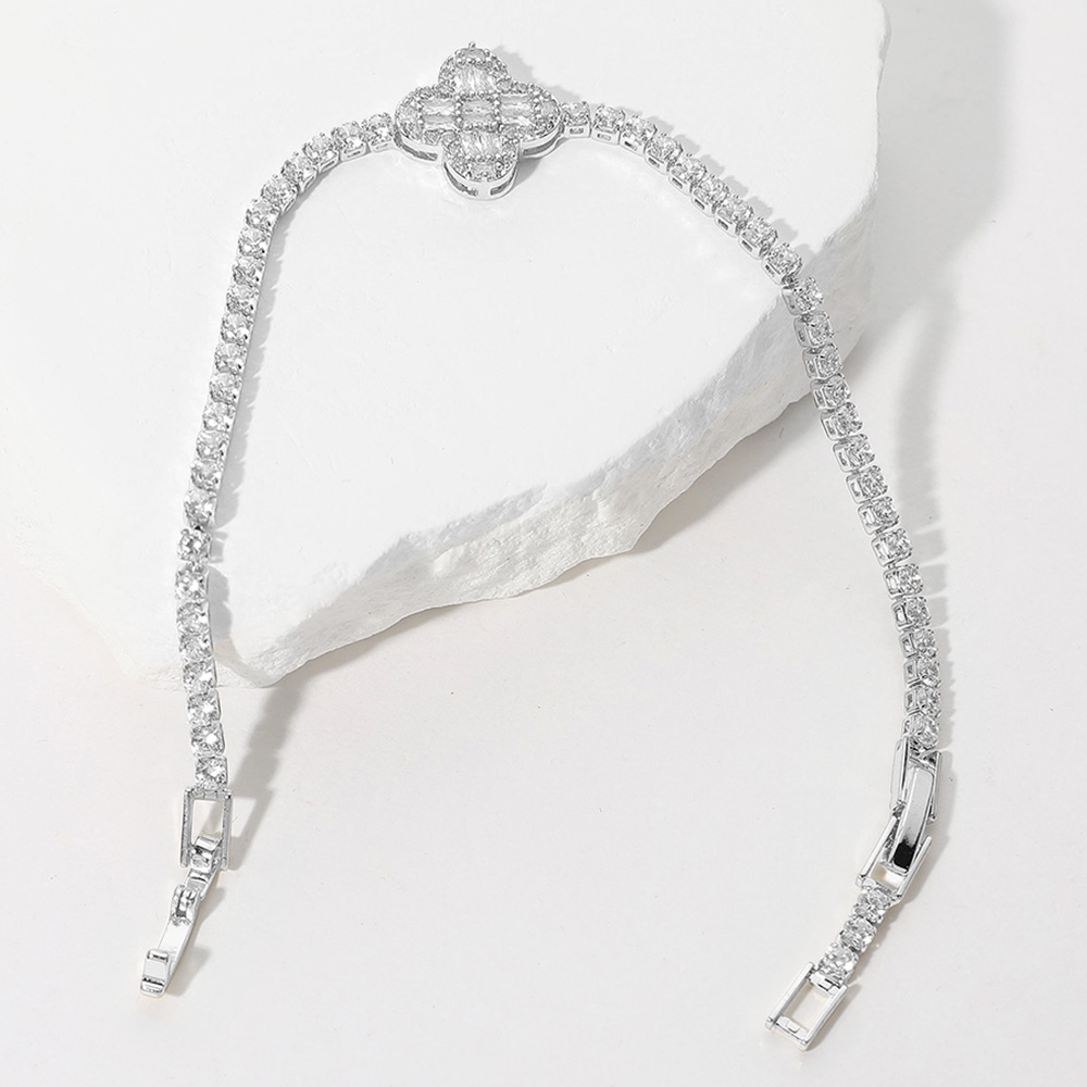 SECRET BOX_Stone Paved Quatrefoil Pointed Baguette Stone Cluster Tennis Chain Bracelet