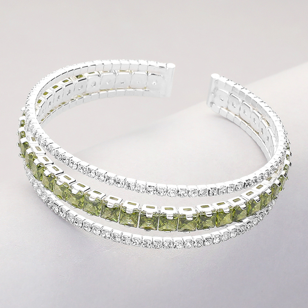 Square Cut CZ Stone Accented Split Evening Bracelet