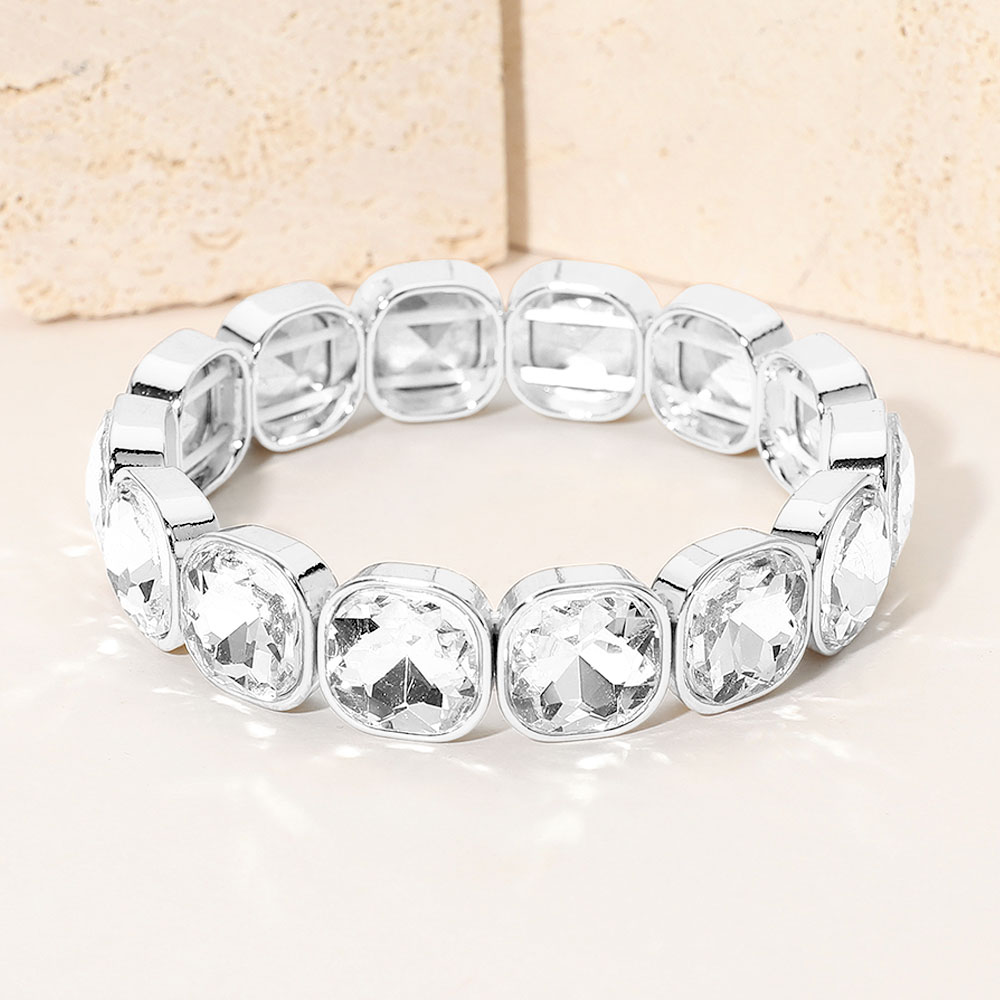 Square Cut Gem Beaded Stretch Evening Bracelet