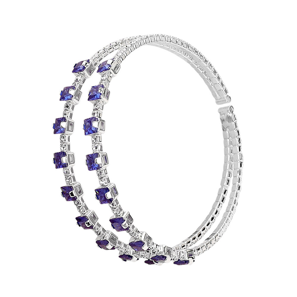 Square CZ Stone Cluster Accented Split Adjustable Evening Bracelet