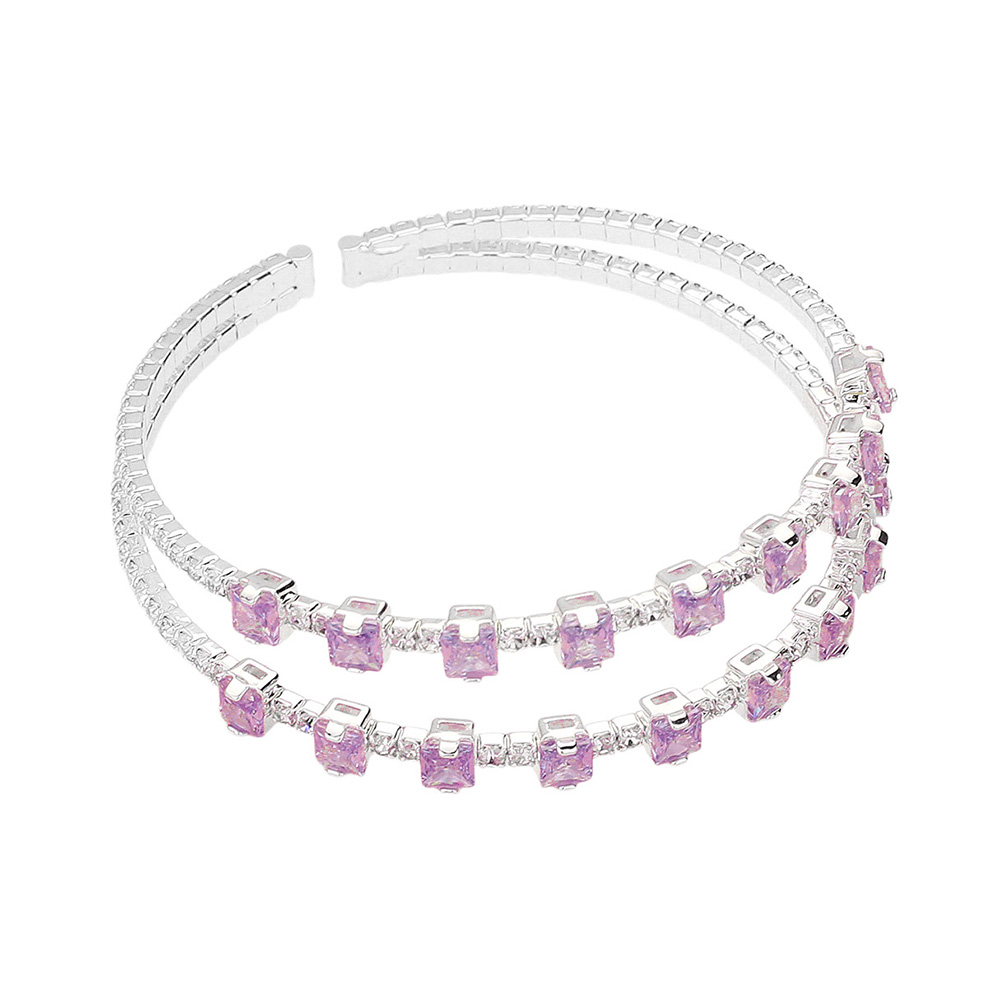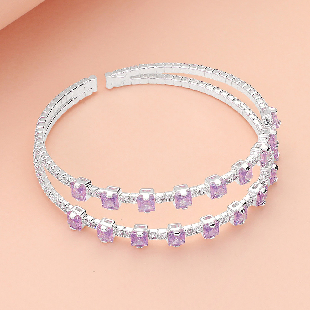 Square CZ Stone Cluster Accented Split Adjustable Evening Bracelet
