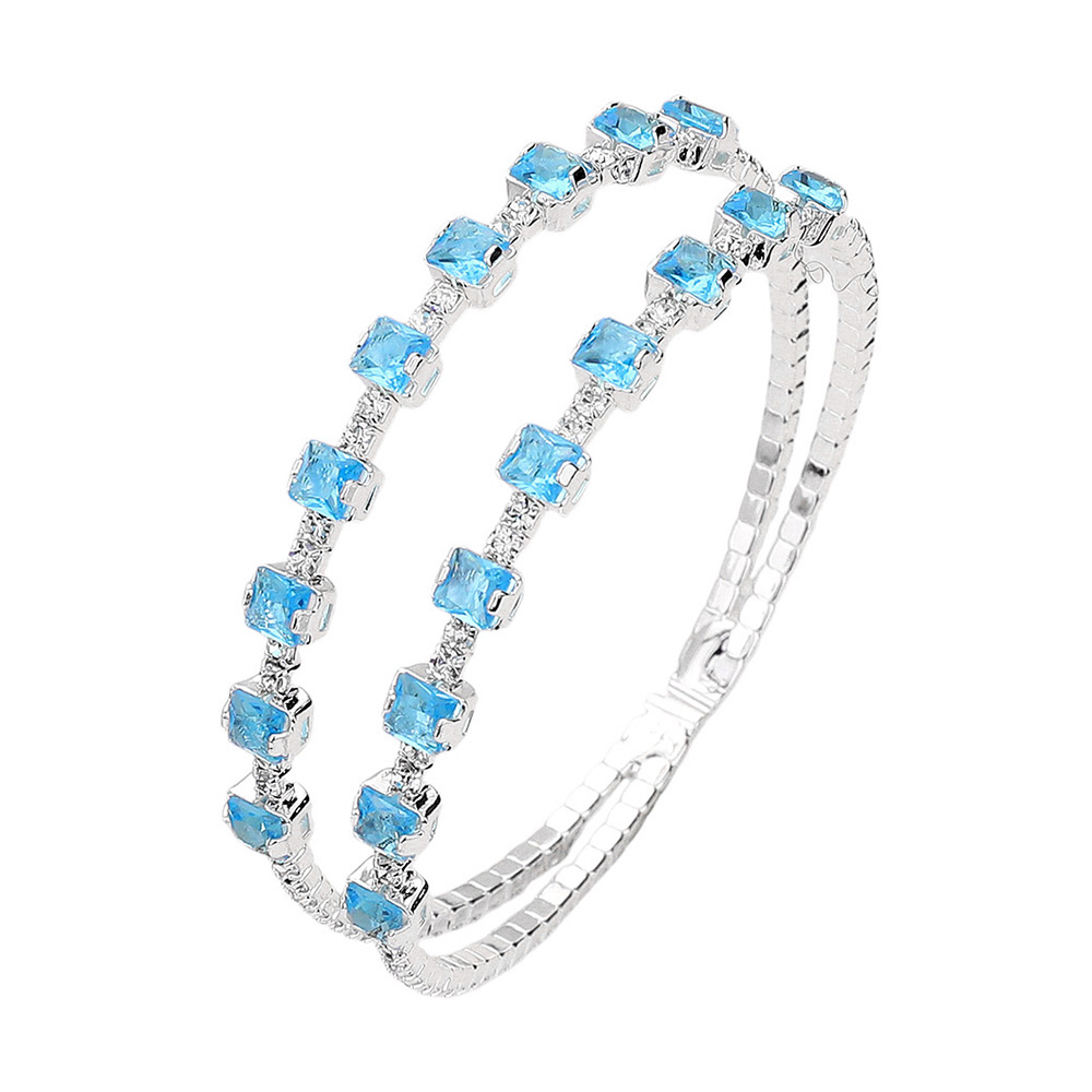 Square CZ Stone Cluster Accented Split Adjustable Evening Bracelet