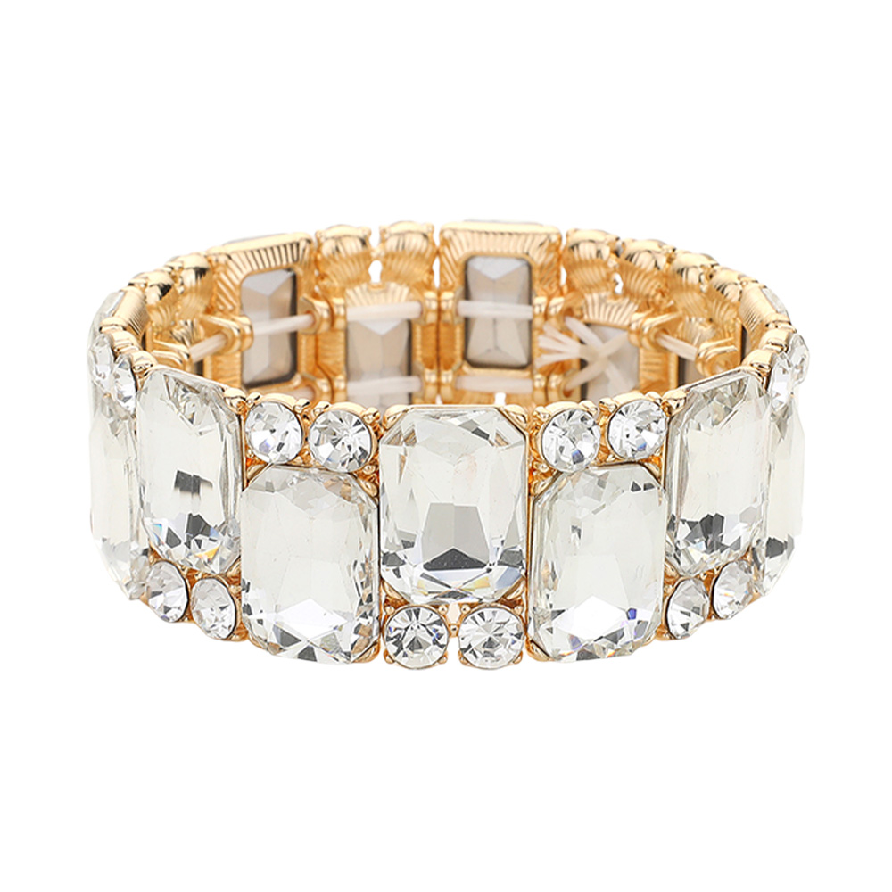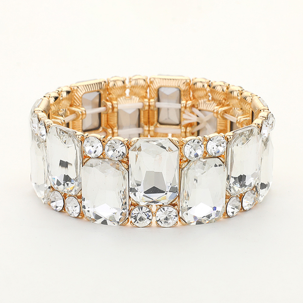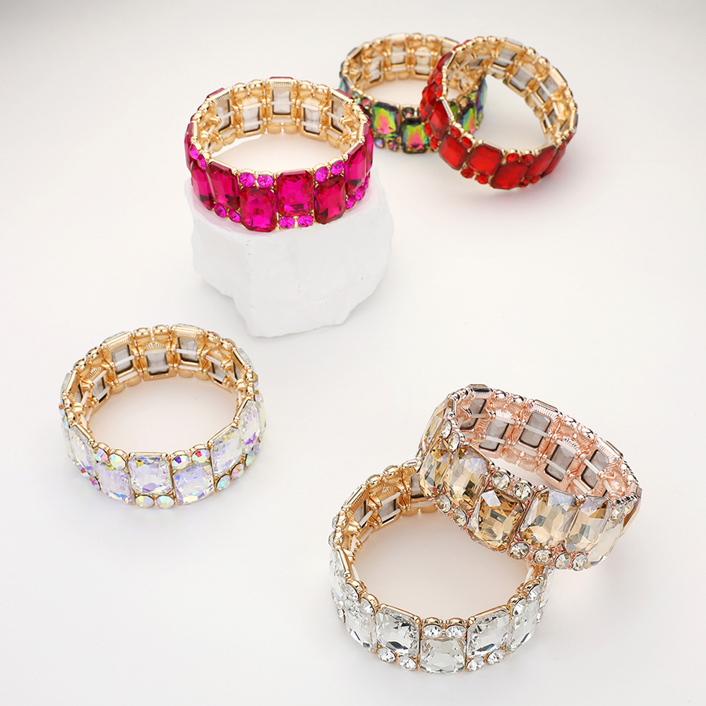 Square Round Glass Stone Cluster Stretch Evening Bracelet