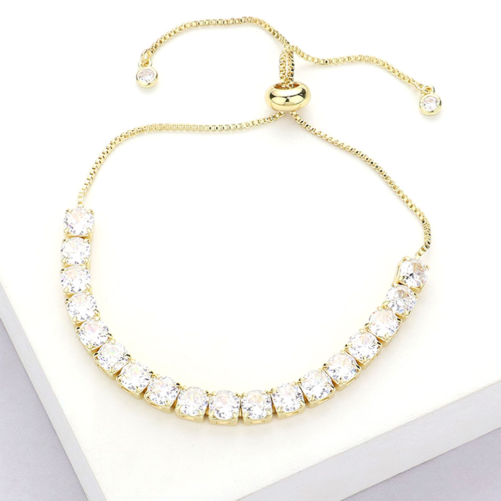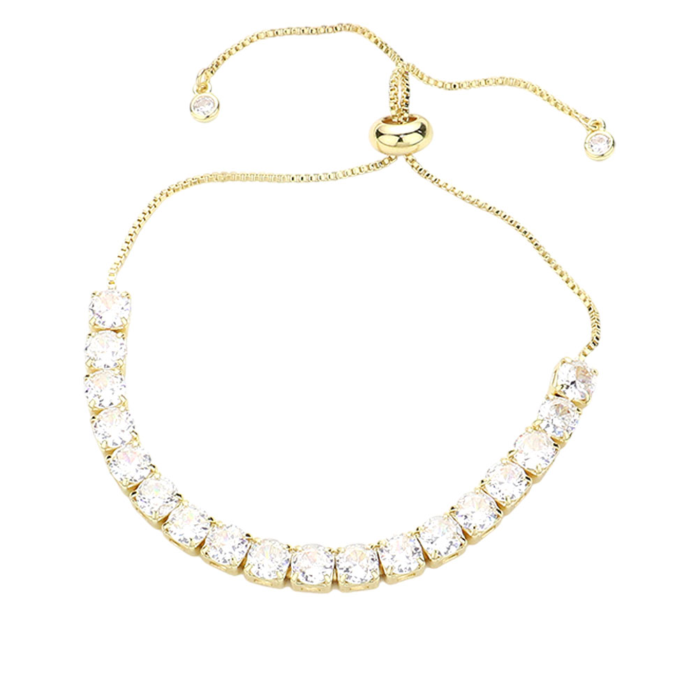 Details • Size : 0.3" H • Adjustable • Elegant adjustable bracelet adorned with shimmering gem accents, designed to add a refined sparkle to any look. Perfect for both everyday wear and special occasions, ensuring a comfortable fit. • Lead and Nickel Compliant • CZ Cubic Zirconia • Stainless Steel