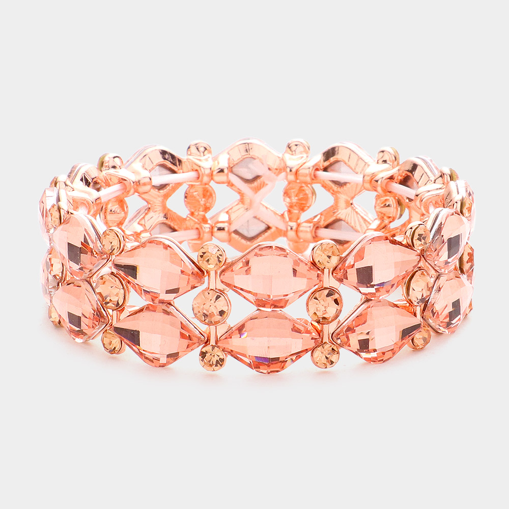 Pave Trim Crystal Oval Stone Stretch Evening Bracelet