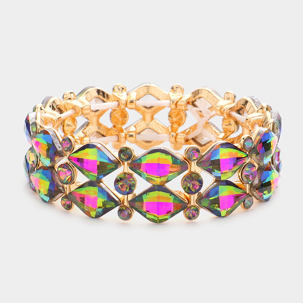 Round Marquise Stone Cluster Stretch Evening Bracelet