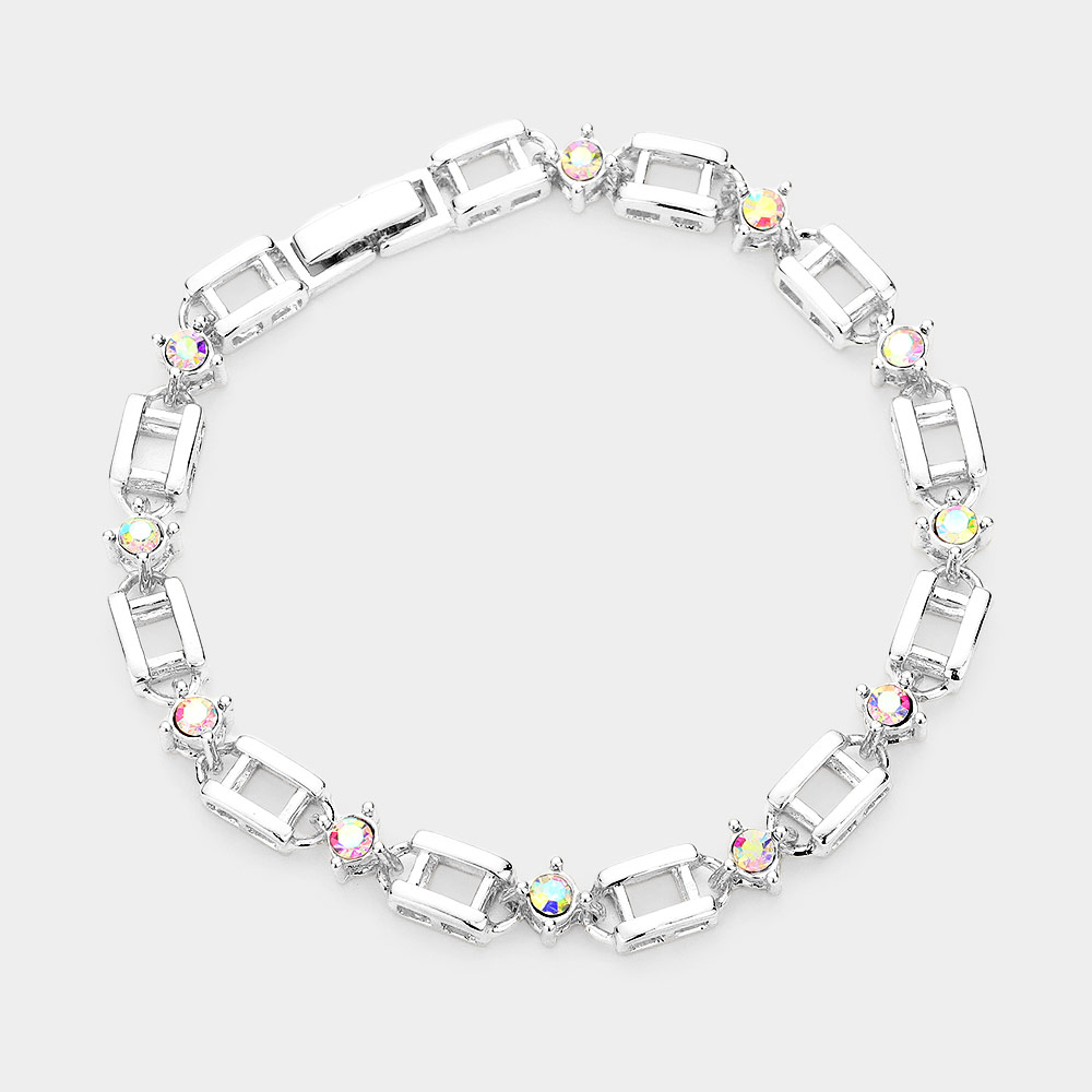 Stone Embellished Open Metal Rectangle Link Evening Bracelet