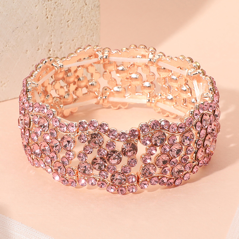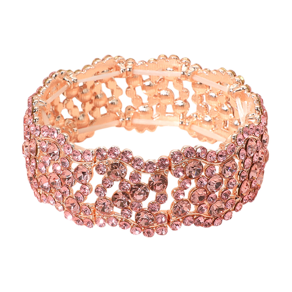 Square Bead Embellished Hammered Metal Stretch Bracelet