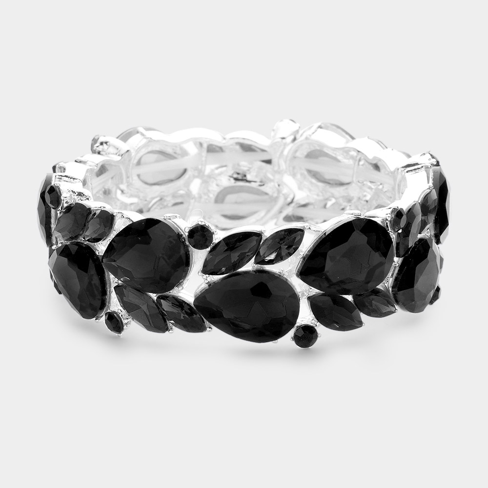 Teardrop Accented Multi Stone Cluster Stretch Evening Bracelet
