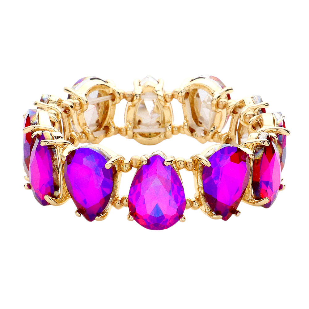 • Elevate your style with this stunning stretch bracelet featuring teardrop-cut crystals in a bold, elegant design. Perfect for formal events, special occasions, or adding sparkle to any outfit.